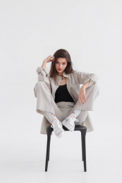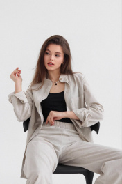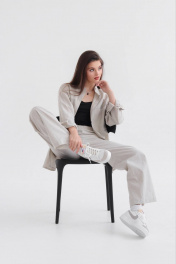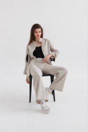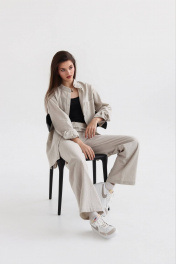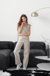 Леневые брюки с эластичной резинкой для летней повседневности SK Brand SK7145 серо-бежевый