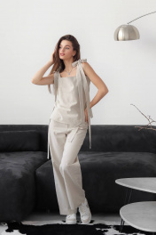 Брюки с эластичной резинкой. - Только деликатная стирка 40 градусов - Не использовать отбеливатели - Изделие вывернуть наизнанку
