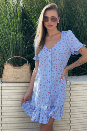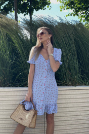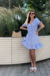 Платье короткое с цветочным принтом и фигурным вырезом Skipper Design 4466 голубой