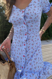 Лекгое платье мини с цветочным принтом от белорусского бренда Skipper Design – всегда актуальный элемент летнего гардероба. Романтичное платье с фигурным вырезом и короткими рукавами с рюшами выполнено из тонкой плательной ткани, за счет чего идеально подойдет на каждый день в летнем сезоне. Изделие застегивается на пуговицы. Параметры: длина 82 см, длина рукава 28 см от горловины, ширина на уровне груди: S - 43см, M - 45см, L - 47см; ширина на уровне бедер: S - 50см, M - 52см, L - 54см.