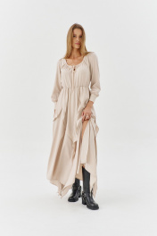 Платье из новой коллекции 2024. Пояс на резинке.Замеры в 44 размере: длина изделия 148см, длина рукава 59см, пог 50см, пот 30см.