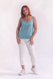 Бирюзовый летний топ из текстиля на бретелях Соджи 558 бирюзовый