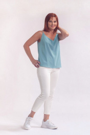 Топ женский на бретелях прямого силуэта, с нагрудной вытачкой из бокового шва.