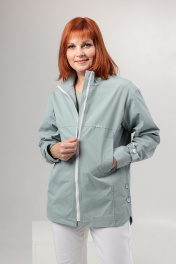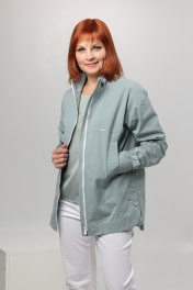 Жакет женский прямого силуэта, со спущенным плечевым швом. Перед с отрезными кокетками и рельефными швами. В рельефных швах обработаны карманы. Центральная застежка - на молнию. В боковых швах обработаны шлицы с застежкой на петли-пуговицы. Низ переда укорочен, по отношению к низу спинки, на 3 см. Длина рукава по плечевому шву - 73 см. Длина изделия по спинке: размеры 46,48 - 75 см; размеры 50,52 - 76 см; размер 54 - 77 см.
