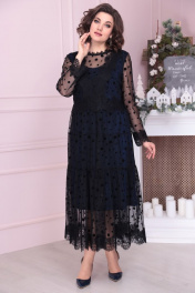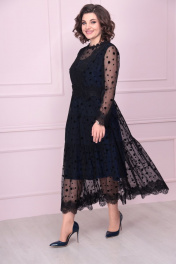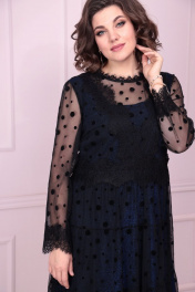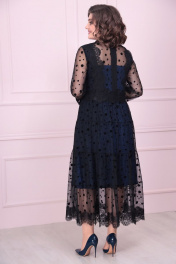 Вечернее платье из кружева и сетки с кружевной отделкой Solomeya Lux 884 черный+синий