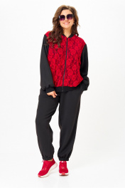 Костюм спортивный брюки бомбер больших размеров Solomeya Lux 946/449В черный_с_красным