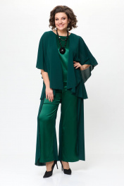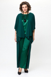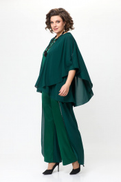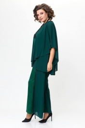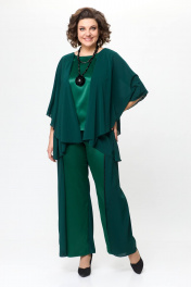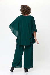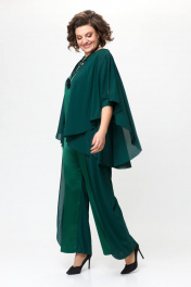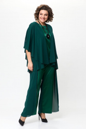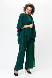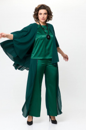 Комплект нарядный женский двухпредметный, состоящий из брюк свободного кроя и блузы. Брюки выполнены в свободном стиле. От бокового шва к центру передней части вставлена отлетная деталь из шифона. Эта деталь украшена отделочной тесьмой из паеток. По линии талии притачной пояс с резинкой по бокам. Застежка потайная молния и пуговица по передней части брюк. Блузка очень красивого летящего силуэта. Состоит из топа и верхней шифоновой блузы. По линии рукава ширина блузы полуклёш. По плечевому шву отделка из пайеток. Брюки и топ выполнены из ткани VELVET CREP SIYAN. Ткань хорошо ложится, смотрится очень богато, красиво. Данная модель подойдет для женщин любого возраста, кто хочет быть неповторимой и самой элегантной. Украшение в комплект не входит. Бережная стирка при 30 градусах!