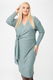 Демисезонное платье из трикотажа с запахом и V-образным вырезом SOVA 11184 мята