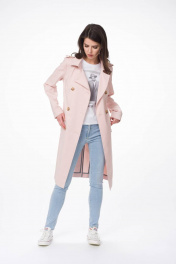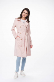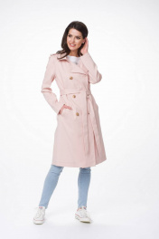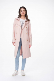 Демисезонный тренч с кокетками и съемным поясом Stilville 1617 персик