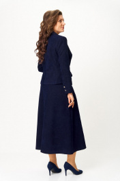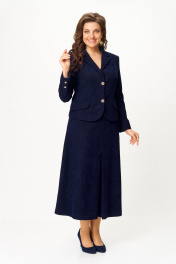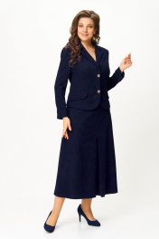 Костюм женский двухпредметный состоящий из жакета и юбки. Жакет полуприлегающего силуэта с втачным рукавом. Застежка центральная на петли и пуговицы. Воротник отложной с лацканами. По переду рельефы от проймы и прорезные карманы с клапаном. Спинка со средним швом и рельефами от проймы. Спинка со средним швом и рельефами от проймы. Рукав длинный двухшовный, по низу декоративная шлица с пуговицами. Юбка женская расширенная к низу, на притачном поясе. Застежка молния по спинке, на петлю и пуговицу на поясе. Переднее полотнище со средним швом посередине и встречной складкой по низу. Для удобства посадки резинка по бокам в поясе. Длина юбки ниже середины икры. Изделие на подкладке. Фурнитура может меняться от наличия. Длина по спинке: 56 см Длина рукава: 62 см Длина юбки: 87 см