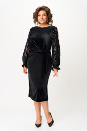 Платье женское полуприлегающего силуэта, длиной миди. Горловина округлой формы с застежкой по спинке на воздушную петлю и пуговицу. Спинка со средним швом. Рукав втачной длинный из отделочной ткани, по низу эластичная тесьма. По линии талии элегантный пояс, регулируется по фигуре, подчеркнет талию и добавит образу оригинальность и изюминку. Длина по спинке: 110 см Длина рукава: 62 см