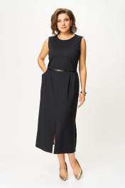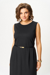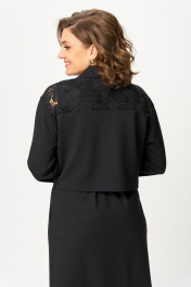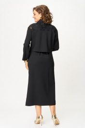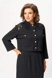 Костюм женский двухпредметный состоящий из платья и жакета. Платье полуприлегающего силуэта, без рукава. Перед платья с горизонтальным швом по талии. Верхняя часть с вытачками по линии груди, нижняя часть со складками в области талии и карманами, что обеспечивает прекрасную посадку и подчеркивает фигуру. Высокие разрезы по бокам и переду платья добавляют удобства. В комплекте съемный ремень. Жакет прямого кроя с застежкой на петли и пуговицы, с втачным рукавом. Линия плеча спущена, по горловине отложной воротник. По переду накладные карманы. Кокетка из кружева по переду и спинке добавляет романтичности и легкости. Длина платья по спинке: 123 см Длина жакета по спинке: 46 см Длина рукава от горловины: 66 см