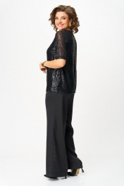 Костюм женский двухпредметный состоящий из блузки и брюк. Блузка прямого силуэта с втачным рукавом. Горловина округлой формы обработана обтачкой. По лини груди вытачки. В боковых швах обработаны разрезы. Рукав длиной до уровня локтя. Перед и спинка блузки на трикотажной подкладке. Брюки свободного кроя отлично подойдут всем типам фигуры. Спереди расположены скошенные карманы. Верх брюк с притачным поясом на резинке. Длина блузки по спинке: 60 см Длина рукава: 30 см Длина брюк: 107 см