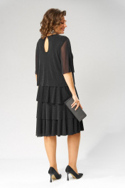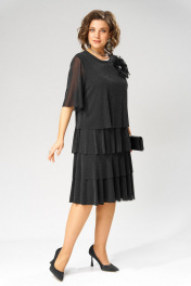 Платье женское свободного А-силуэта выполнено на подкладке из трикотажной ткани, с втачным рукавом. Горловина округлой формы. Верхняя часть платья отлетная, что придает изысканность платью. По переду расположены нагрудные вытачки, по спинке застежка на петлю и пуговицу в форме капельки, обеспечивающей идеальную посадку. Особенный акцент платья – это три ряда воланов по низу, добавляющие объем и изюминку. Нижний край воланов и рукавов не обработан. В комплекте съемное декоративное украшение. Длина платья по спинке: 101см Длина рукава: 34 см