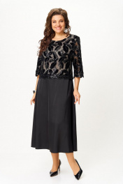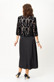 Платье женское полуприлегающего силуэта с расширением понизу. Платье выполнено как имитация комплекта. Верхняя часть платья из кружева на трикотажной подкладке, нижняя часть из атласа «Армани». По линии груди вытачки. Втачные рукава длиной ¾, добавляют романтичности и легкости. Такое платье отлично подойдет как для вечернего выхода, так и для более формальных событий. Длина по спинке: 122 см Длина рукава: 39 см