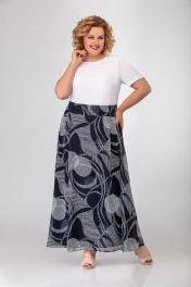 Юбка женская, длинная. На трикотажной подкладке. Ткань шифон кришованный. По переду и спинке ближе к боковым швам односторонние складки. Верхний срез обработан кокеткой. Верхний срез кокетки обработан обтачкой. Ширина кокетки 7,5 см. По переду кокетки и спинки, шлёвки. Потайная молния в левом боковом шве. Длина юбки 100 см, с учётом ширины кокетки (±1 см).