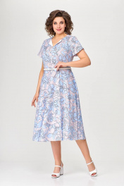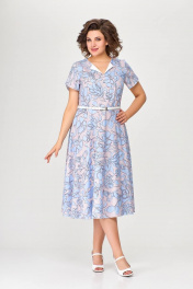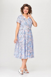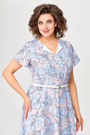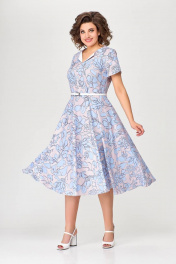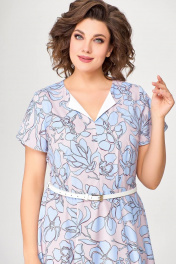 Летнее платье А-силуэта с рельефами и ремнем Swallow 665.1 розовый/принт