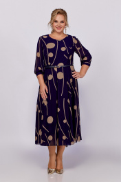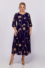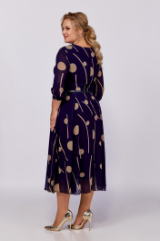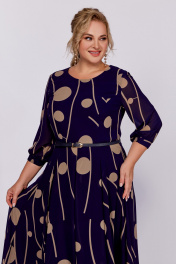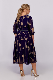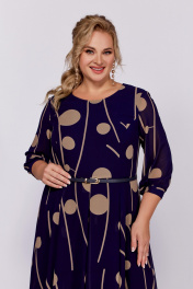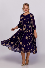Платье из шифоновой ткани на трикотажной подкладке , Х-образного силуэта с полуприлегающим лифом. Платье отрезное по линии талии. По переду лифа расположены рельефы, по спинке лифа талиевые выточки. Юбка расклешенная из шести клиньев со встречными складками по линии талии. В среднем шве спинки предусмотрена молния. Рукав втачной длиной ¾, по низу манжета с эластичной вставкой . Длина рукава – 48 см. В комплекте ремень с декоративной пряжкой. В 64 размере пояс из основной ткани. Длина изделия по спинке 120 (+/-1) см