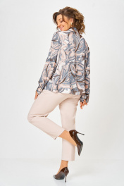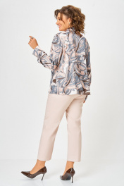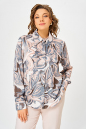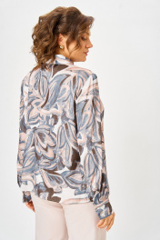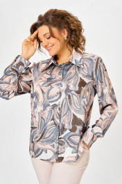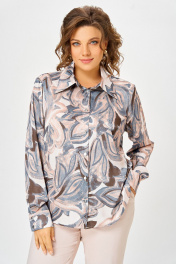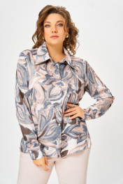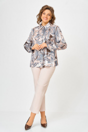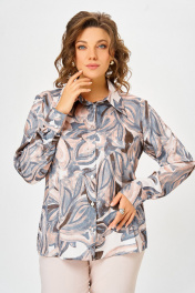 Блузка из нежной ткани «армани», имитирующей шёлк, прямого силуэта с центральной застёжкой на петли и декоративные пуговицы. Перед с нагрудными вытачками. Спинка цельная. Воротник рубашечного типа с отрезной стойкой. Рукав втачной одношовный с манжетой, которая застёгивается на две петли и пуговицы. Длина по спинке р.50,52,54 – 63 (+/- 1) см. Р.56,58,60 – 66 (+/-1) см. Длина рукава – 66 (+/-1) см.