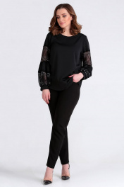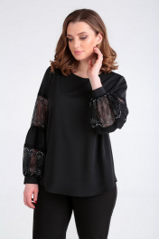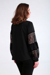 Романтическая блуза свободного кроя с кружевными рукавами Таир-Гранд 62370 черный
