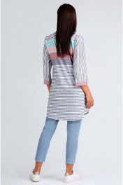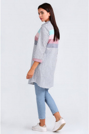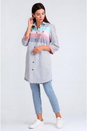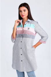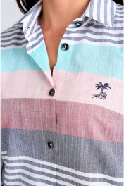 Летняя, удлиненная рубашка-туника, которую можно носить как самостоятельную одежду, так и в тандеме с низом. Туника выполнена из 100% хлопка. Застежка центральная, на планку. Воротник рубашечный, на стойке. Рукав втачной с притачным манжетом. Длина рукава с отвернутым вниз манжетом - 51 см. В изделии имеются нагрудные вытачки. Над левой нагрудной вытачкой выполнена небольшая, в виде пальмы, вышивка. В боковых швах обработаны навесные карманы.