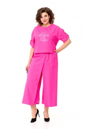 Кюлоты и блузон из текстиля с разрезами и аппликацией Taita plus 2309/2 фуксия