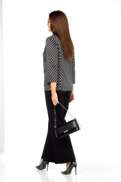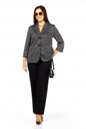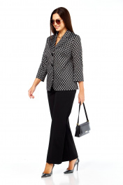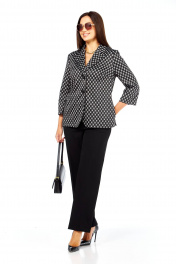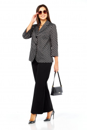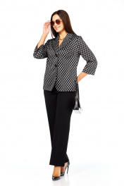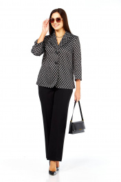 Очень стильный ,элегантный ,модный женский комплект , состоит из классических брючек и жакета из трикотажной ткани хорошего качества , прямого силуэта . Жакет стильного дизайна , с двумя, крупного размера пуговицами. Рукав втачной - 50,5 см . Длина жакета по спинке от плеча 67 см. Сбоку жакета в шве функциональные карманы. . Брючки классические , из более плотной костюмной ткани габардин , . спереди на молнии , ,функциональными карманами по бокам . Пояс сзади на резинке. Ткань костюмно - плательная 96 пэ , 4 спандекс. , 96 ПЭ 4 эластан , Рост модели 173 см