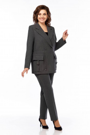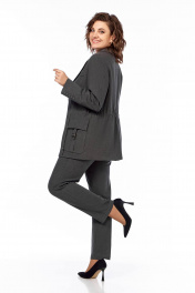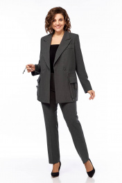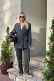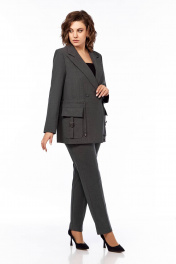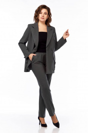Деловой костюм брюки и удлинённый жакет из текстиля Temper 152 серый