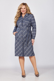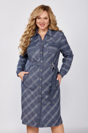Комфортное платье-рубашка с клетчатым принтом — отличный выбор для Вашего гардероба. Классический прямой силуэт обеспечивает оптимальную посадку по фигуре. На переде обработаны кокетки, два кармана c листочками, два накладных кармана в области груди, застёжка на 8 петель и пуговиц. Спинка с кокеткой, средним швом, талиевыми вытачками. В боковых швах разрезы. Рукав втачной, двухшовный, с разрезом в локтевом шве, по низу с заложенными складками и манжетой на пуговице. Воротник стояче-отложной со стойкой. Съёмный пояс идёт в комплекте. Металлическая фурнитура может незначительно отличаться от представленной на фото. Длина от центра горловины спинки до низа 104 см для размеров 54-58; 106 см - для размеров 60-64, длина рукава 61 см.