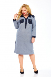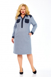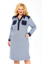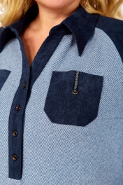 Комфортное платье, выполненное из тёплого трикотажа и микровельвета, станет универсальным решением для прохладных дней. Модель идеально подходит для повседневных образов и встреч в неформальной обстановке. На переде обработаны наклонные кокетки, накладные карманы, декорированные отделочной тесьмой, карманы с листочками, застёжка-планка на 4 петли и пуговицы. Платье имеет спущенную линию плеча. Спинка с кокеткой, средним швом и вытачками. Вдоль боковых швов обработаны отделочные вставки, по низу разрезы. Рукав спущенный, длинный с отделкой по низу. Воротник стояче-отложной со стойкой. Фурнитура может отличаться от представленной на фото. Длина от центра горловины спинки до низа для размеров 52-56 — 103,5 см, для размеров 58-62 — 105 см. Длина рукава — 61 см.