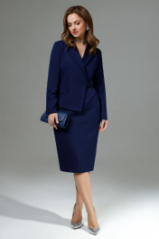 Платье с пиджачным воротником и длинным рукавом TEZA 3023 темно-синий