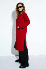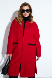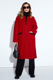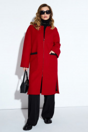 Длинное демисезонное пальто из пальтовой ткани и шерсти TEZA 4178 красный