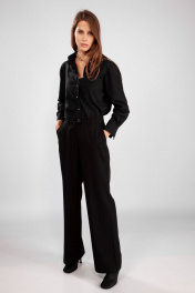 Черные свободные брюки расклешенного силуэта THE NAME 2206А