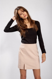 Юбка: Юбка прилегаюшего силуэта, на подкладке. Застежка потайная тесьма-молния в боковом шве юбки. Спереди изделия небольшой разрез. Длина юбки: размер (44) - 44 см. Ширина по талии – 33 см Ширина внизу юбки – 49 см