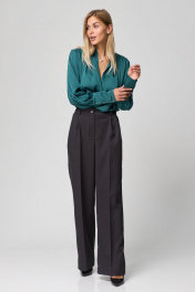 Широкие брюки палаццо — одна из самых актуальных сейчас моделей брюк.Можно сочетать со строгим жакетом, рубашкой или блузкой, свободным свитером, топом. Брюки прямые классические с боковыми функциональными карманами, спереди застежка- молния, по переду защипы. Брюки выполнены из премиальной ткани костюмной группы.Верх брюк обработан притачным поясом со шлевками. Данная модель делает фигуру стройнее и зрительно удлиняет ноги.Длина брюк по боковому шву - 107см, посадка высокая, ширина внизу брючины - 28см, полуобхват талии в 42-м размере -32см.