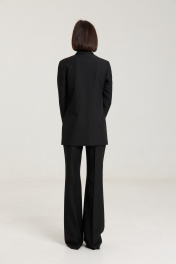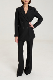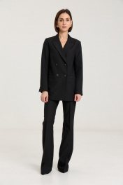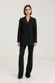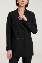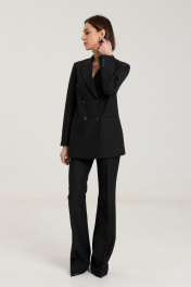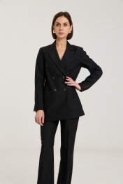 Жакет пошит таким образом, чтобы в нем было комфортно женщине любого возраста, с любыми формами.Жакет двубортный, с нагрудными выточками, прорезные карманы в рамку с клапанами, застежка на петли и пуговицы, спинка со средним швом, втачные двухшовные рукава, с тремя отделочными пуговицами,жакет на подкладке. Выполнен из премиальной ткани костюмной группы. Длина изделия по спинке 71 см, длина рукава 60 см.