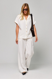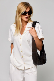 Блуза летняя с коротким рукавом и отстроченной планкой THE NAME 2293 молочный