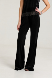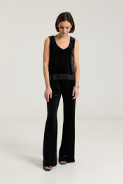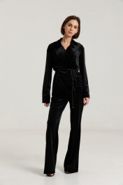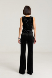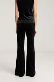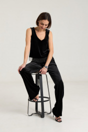 Брюки расклешенные свободного кроя из велюровой ткани - это не только модель для праздника. Данную модель можно сочетать с рубашкой, блузкой, жакетом из бархата арт. 2474 , топом арт. 2468 дополнить образ различными аксессуарами, обувью на плоской подошве, обувью на шпильке ,также подойдут кеды или кроссовки для более повседневных образов в сочетании с футболкой и кожаной курткой. Талия высокая, брюки на резинке , длина по боковому шву 108см.