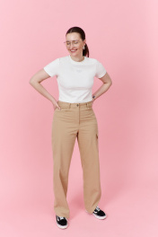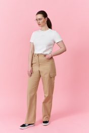 Брюки-карго из чинос-ткани с накладными карманами и эластичным поясом THÉA club 5002 бежевый