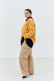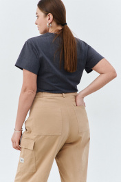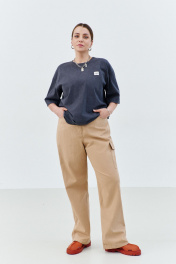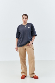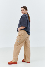 Брюки-карго, женские прямого силуэта от бедра, длиной макси из чинос-ткани с содержанием хлопка . Прямой силуэт, спереди застежка на молнию, в джинсовом стиле карманы, боковой накладной карман с клапаном и настроченной лейбой с фирменном названием бренда по карману. Сзади накладные карманы. Отделочные двойные строчки хб нитью в джинсовом стиле. Сзади по поясу эластичная тесьма, для комфортной посадки брюк на фигуре Длина изделия 109 ширина по бедрам- 120/124/128/132/136 ширина по талии- 84/88/92/96/100