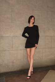 Платье приталенного кроя, с акцентной сборкой на талии. Рост модели 168 см. Длина-91 см, рукав-63 см, обхват груди-86 см, обхват талии-70 см, обхват бедер-92 см.