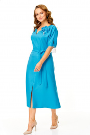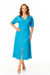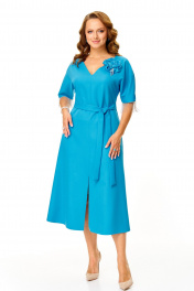 Нарядное элегантное платье из плотной ткани с легким блеском. Украшено съемным цветком. Полуприлегающего силуэта с небольшим расклешением к низу. Горловина V-образной формы. Застежка молния по спинке. Рукав цельнокроеный с разрезом. По низу рукава отделка из серебристой тесьмы «цепочки». По переду невысокий соблазнительный разрез. Пояс съемный. Платье без подкладки. Длина платья 115 см Длина рукава от горловины 43 см Обхват по груди размер 48-100 см 50-104 см 52-108 см 54-112 см 56-116 см Обхват по талии 48-94 см 50-98 см 52-102 см 54-106 см 56-110 см