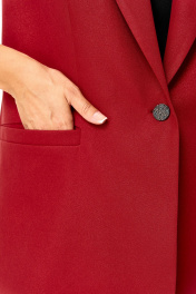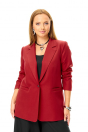 Яркий стильный жакет на жаккардовой подкладке в компании струящихся черных брюк и блузы. Свободный жакет с воротником и лацканами, застегивается на петли и пуговицы, с прорезными карманами по переду. Рукав длинный. Жакет перед и спинка на подкладке. Жакет на подкладке. Длина жакета: 71 см. Длина рукава 62 см Объем по низу жакета размер 48-114 см 50-118 см 52-126 см 54-132 см 56-136 см