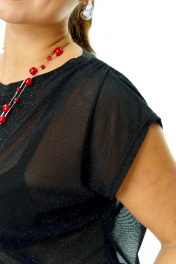 Комплект жакет, юбки, блузка Стильный нарядный комплект состоит из жакета, юбки и полупрозрачной блузки . Выполнен из нарядной костюмной ткани в сочетании с кружевом и полупрозрачной сеткой. Свободный жакет с воротником и лацканами, застегивается на петли и пуговицы, с прорезными карманами по переду. Рукав длинный. Жакет по переду и спинке на подкладке. Длина жакета: 71 см. Длина рукава 62 см Объем по низу жакета размер 48-114 см 50-118 см 52-126 см 54-132 см 56-136 см Полупрозрачная блузка из трикотажного полотна с овальной горловиной и коротким рукавом. Длина 58 см Длина плеча 16-18 см Юбка из плотного черного кружева на красной саржевой подкладке зауженная к низу с разрезом по спинке. Застежка «потайная молния» по среднему шву спинки. Верх на обтачке. Длина юбки- 72 см Объем по поясу размер 46-80 см 48-84 см 50-88 см 52-92 см 54-96 см Объем по бедрам размер 46-103 см 48-107 см 50-111 см 52-115 см 54-119 см