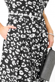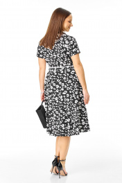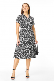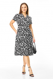 Элегантное женственное платье из натуральной хлопковой ткани. Платье отрезное по талии, полуприлегающего силуэта. Лиф полуприталенный с глубоким запахом и воротником. Юбка из клиньев, с карманами в боковых швах. Рукав втачной короткий. По спинке застежка «молния». Пояс съемный с пряжкой. Платье без подкладки. Длина платья размер 46-50 110 см размер 52-54 115 см Длина спинки до талии размер 46-50 37 см размер 52-56 см Длина юбки от талии 73 см. Длина рукава размер 46-50 20 см. размер 52-56 24 см Обхват по груди размер 46-94 см 48-98 см 50-102 см 52-106 см 54-110 см 56-114 см Окружность по талии размер 46-83 см 48-87 см 50-91 см 52-99 см 54-103 см 56-107 см