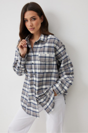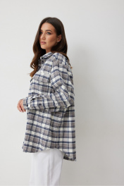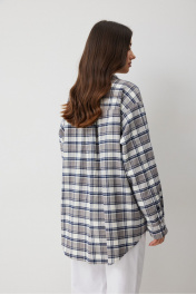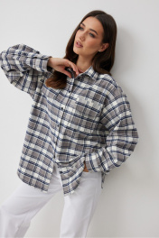 Женская рубашка в стиле кэжуал.— основа для повседневного гардероба. Рубашка свободного силуэта. Горловина с классическим рубашечным воротником. Застежка центральная на петли и пуговицы. Расслабленный крой подчеркнут спущенной линией плеча и длинными рукавами, снизу с манжетой на пуговице. По полочке накладные карманы с клапаном. По спинке отрезная кокетка со встречной складкой обеспечивает комфортный дополнительный объем. Низ рубашки скруглен к боковым швам. Эта рубашка — незаменимая база, которая легко интегрируется в любой повседневный образ. На фото с джинсами М352. Промеры в 44 размере: длина по спинке - 80 см длина рукава от горловины - 77 см ПОГ - 54 см ПОБ - 66 см