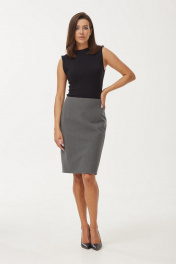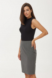 Юбка женская полуприлегающего силуэта, длиной до колена, выполнена из костюмной ткани. Посадка на талии, без пояса. По передним и задним половинкам вытачки. Заднее полотнище со средним швом, снизу которого шлица. Застежка на потайную молнию в среднем шве. Юбка на подкладке. Длина изделия по боковому шву 60 см. Юбка составит стильный образ с жакетом М611.