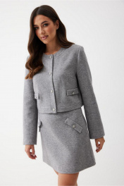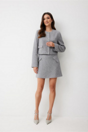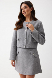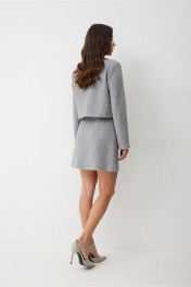 Женская юбка трапеция длиной мини с посадкой на талии, выполнена из трикотажного полотна. Юбка А-силуэта, на поливискозной подкладке. По переду на уровне бедер листочки с декоративными пуговицами. Пояс притачной, застежка на потайную молнию в боковом шве. Универсальная модель юбки подходит для сочетания с жакетами, блузами, водолазками и свитерами. Отличный вариант для стильных повседневных и деловых образов. К юбке прекрасно подойдет жакет М666/1. Промеры в 44 размере: длина по боковому шву (с поясом) - 47 см ПОТ - 37 см ПОБ - 48 см