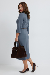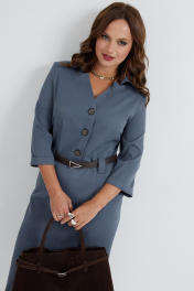 Стильное платье А-силуэта, выполненное из вискозы с оригинальным принтом. Платье отрезное по линии талии. Верхняя часть переда платья с круглой горловиной, спинка - со средним швом и капелькой, застегивающейся на навесную петлю и пуговицу. Рукав цельнокроенный, длиной 7/8. Нижняя часть платья покроя полусолнце. На одной из сторон юбки переда обработана отделочная планка с декоративными пуговицами, внизу - разрез. В боковых швах в области бедер обработаны карманы. В центральной части переда в области талии - притачной пояс со съемной декоративной цепью, которая изящно подчеркивает линию талии. По боковым швам и спинке пояса вставлена широкая резинка. Это нарядное женское платье идеально подходит для торжественных мероприятий, романтических прогулок, новогодних корпоративов и юбилеев, подчеркивает индивидуальность и стиль.