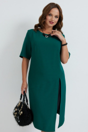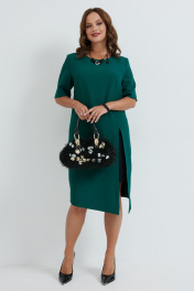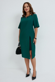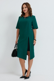 Эффектное платье прямого силуэта, выполненнное из поливискозы двух цветов. Перед платья с круглой горловиной и нагрудными вытачками. Перед платья в области бедра с косым подрезом. Нижняя часть переда состоит из верхней и нижней юбки. Верхняя юбка с косым низом и разрезом. Нижняя юбка из ткани контрастного цвета, имитирующая вторую юбку. Спинка с потайной молнией в среднем шве. Рукав втачной, длиной до линии локтя. В комплект к платью входит декоративная подвеска. Идеальное сочетание пикантности и элегантности от TVOI IMIDJ для тех, кто ценит стиль.